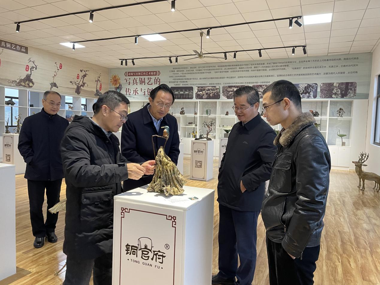 12月12日,黃岡市人大常委會黨組副書記、副主任詹旺民率隊來我公司考察,市人大常委會黨組副書記、副主任汪宜武陪同。公司負責人郭飛向大家詳細介紹了公司文旅融合發(fā)展、銅文化資源挖掘、銅文化建設等工作情況。詹旺民副主任充分肯定了銅官府在壯大銅文化產業(yè)方面所做的工作和取得的成效,并希望進一步加強兩地文化的互動交流、互學互鑒,共同促進經濟社會發(fā)展。